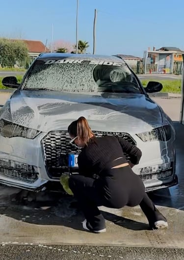 Guida pratica direttamente in autolavaggio sulla pulizia del veicolo con prodotti professionali.